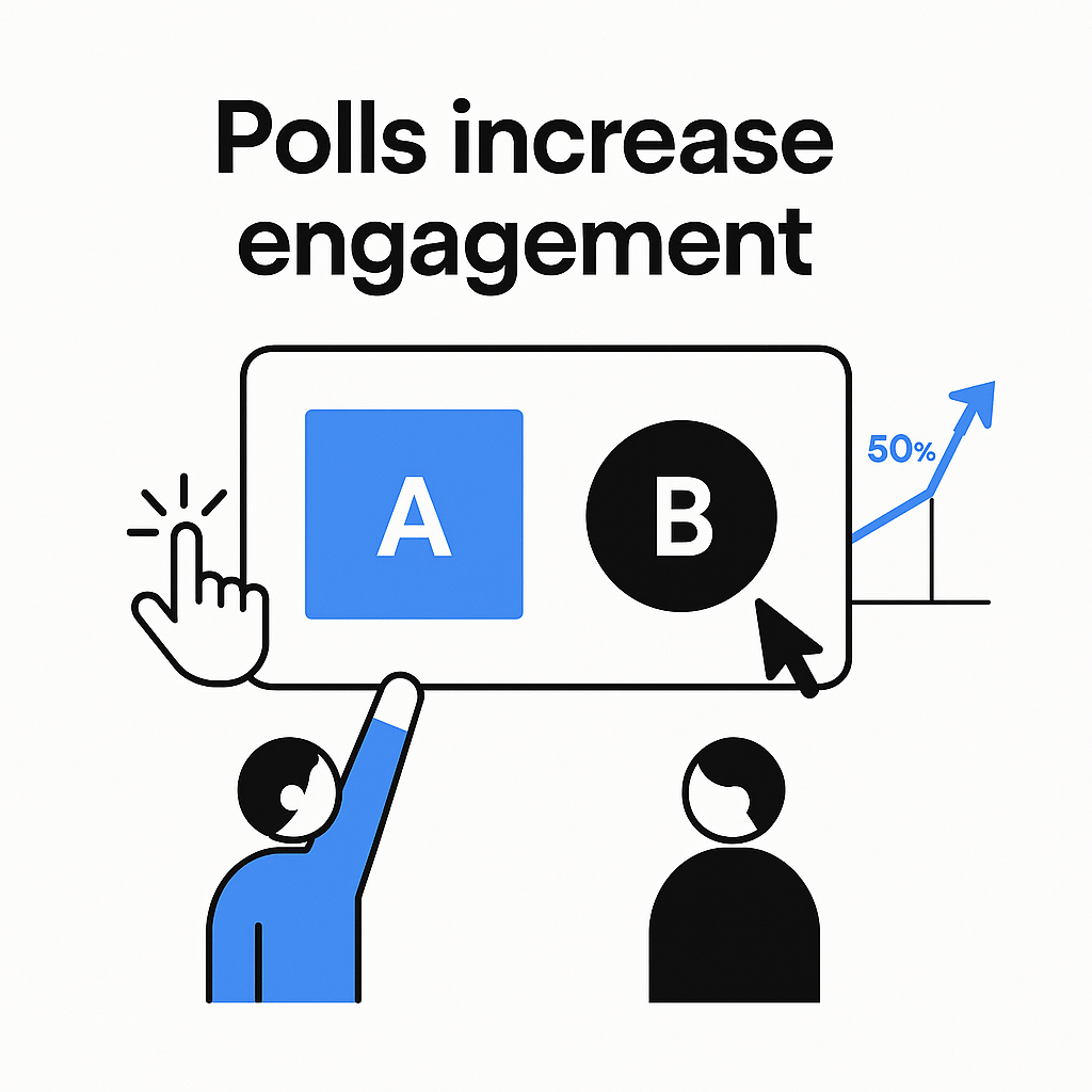 | Polls | Instagram, Twitter, Facebook | 50-70% higher | Opinion gathering, A/B testing |